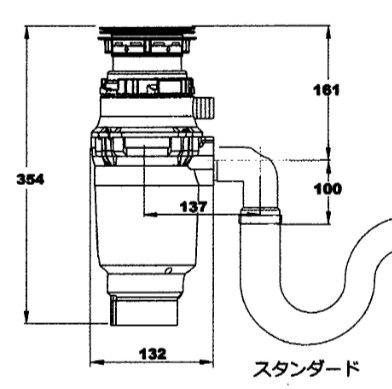 標準シンクとは排水トラップの形が丸型で外径は115mmか180mmで、その排水トラップを取りはずしてその後にディスポーザーが取付出来て近 くに使用できる100Vのコンセントがあるシンクです。